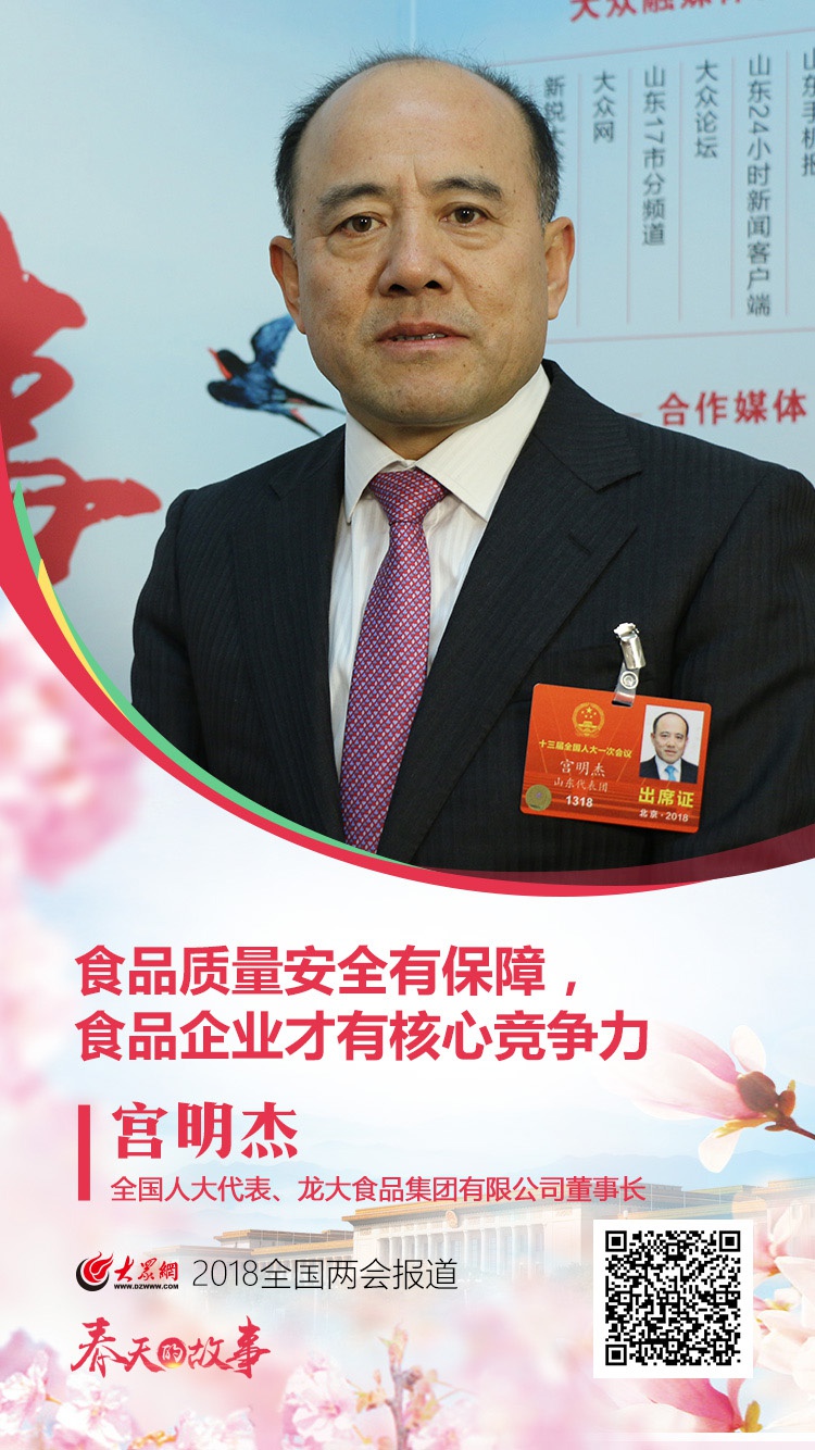 兩會傳真之九:全國人大代表、龍大集團董事長宮明杰:食品質量安全有保障,食品企業才有核心競爭力